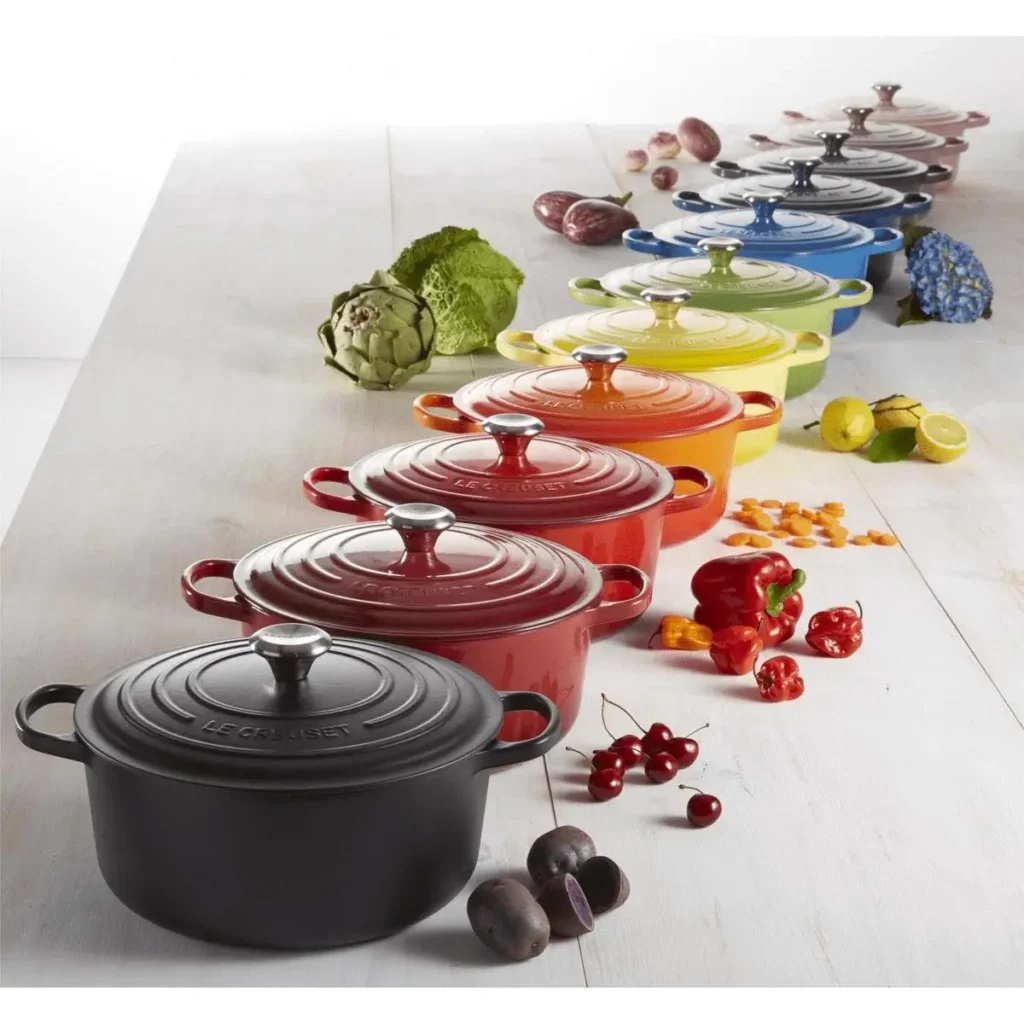 ✅ Prachtig fraai design – De iconische kleuren zoals kersenrood, diepblauw of zwart zijn een lust voor het oog en mogen gezien worden. Je kunt de pan zonder schaamte op tafel zetten als servies.